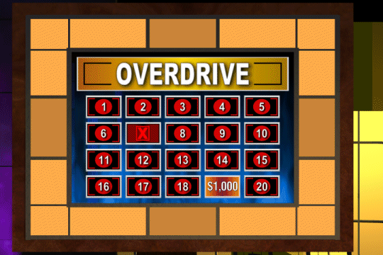 Overdrive The teammates got 3 #1 answers, meaning they had 4 chances at $100,000 in Overdrive. The Team's Choices